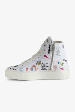 – Women’s white smooth leather sandals – Adjustable tied crossover straps with charms – Heel height: 3.5 in – Made in Portugal The Leather Working Group/LWG is a membership organization comprised of brands, suppliers, leather manufacturers and other stakeholders within the leather manufacturing industry. The group has developed an auditing program which certifies leather manufacturing facilities based on their environmental compliance and performance capabilities