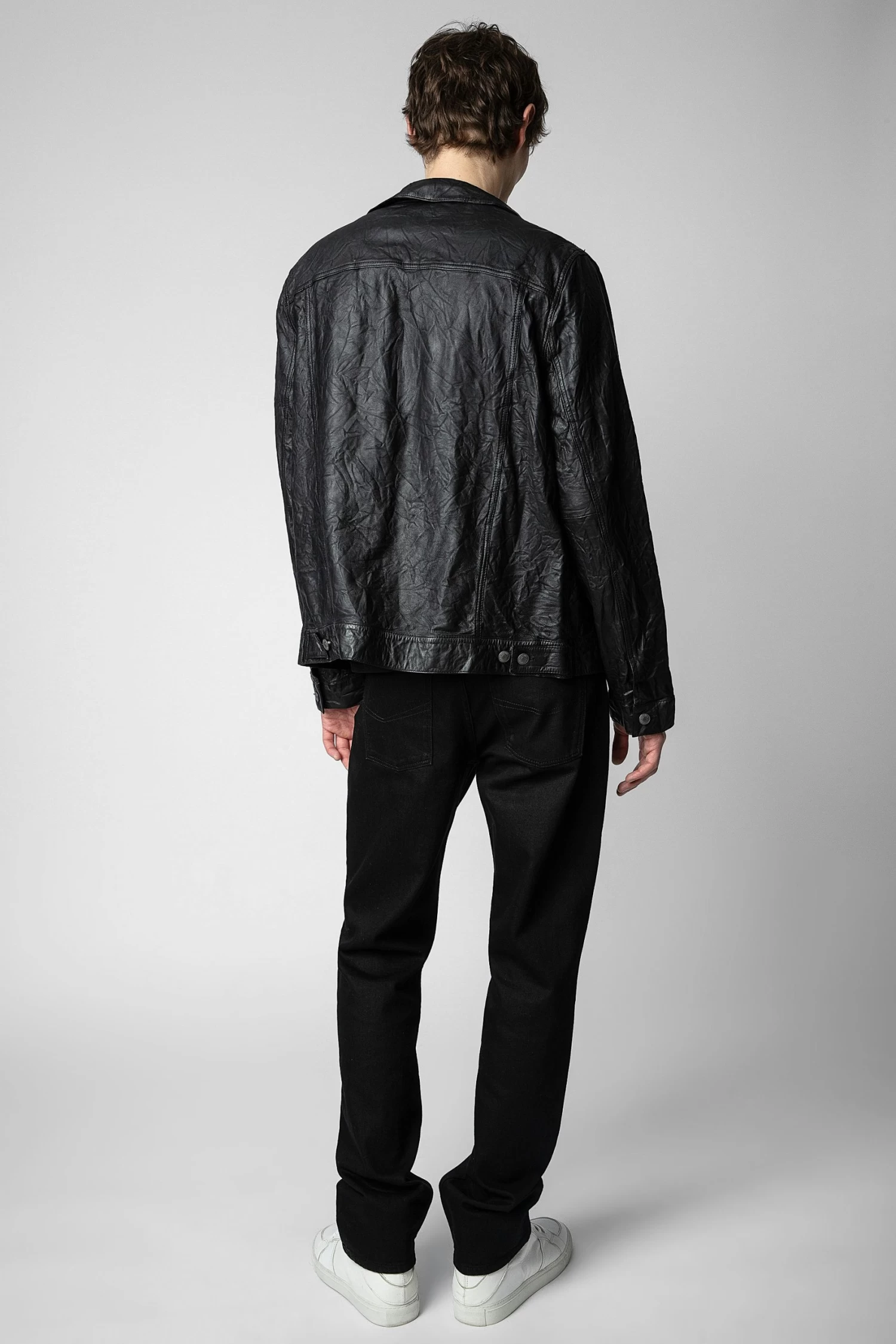 Blazer in crinkled leather, the Maison’s signature material, with long sleeves and a buttoned closure. – Zadig&Voltaire Men’s blazer in black crinkled leather – Buttoned closure – 2 chest pockets with flaps – 2 welt side pockets – Buttoned cuffs – Zadig&Voltaire’s signature material, crinkled leather is obtained by means of a multi-step process developed by the Maison, guaranteeing a unique product that incorporates exceptional craftsmanshipModel is 186 cm / 6′ 1″ and is wearing a size MThe Leather Working Group/LWG is a membership organization comprised of brands, suppliers, leather manufacturers and other stakeholders within the leather manufacturing industry. The group has developed an auditing program which certifies leather manufacturing facilities based on their environmental compliance and performance capabilities