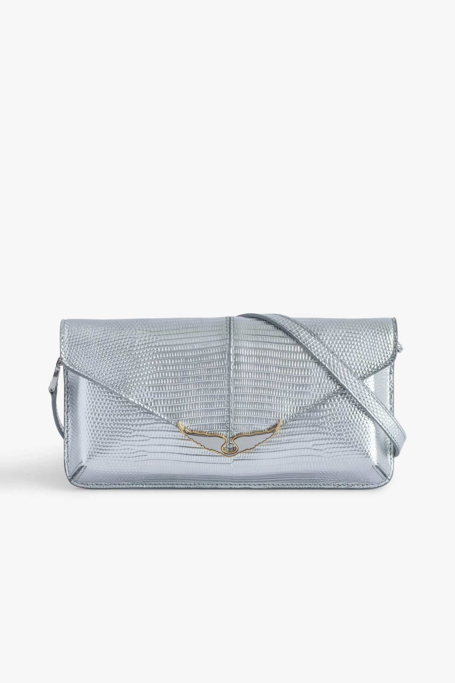 – Women’s Borderline Silver metallic iguana-embossed leather clutch – Leather shoulder strap and metal chain – Flat zip pocket and 4 card slots – Gold- and silver-tone metal wings charm – Flap closure – Carry by hand, over the shoulder or across the body The Leather Working Group/LWG is a membership organization comprised of brands, suppliers, leather manufacturers and other stakeholders within the leather manufacturing industry. The group has developed an auditing program which certifies leather manufacturing facilities based on their environmental compliance and performance capabilities