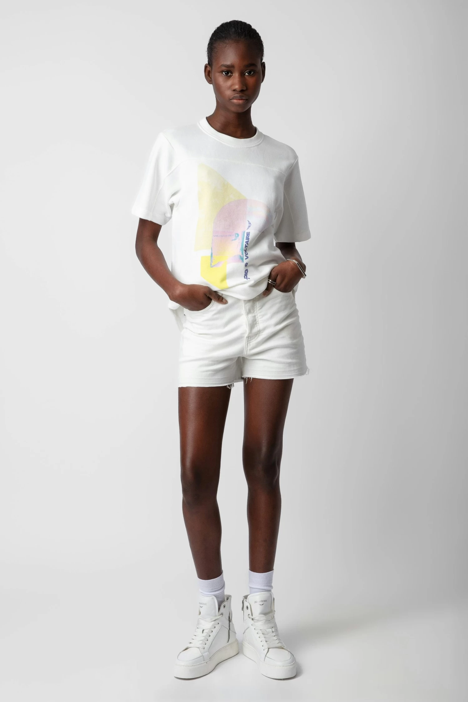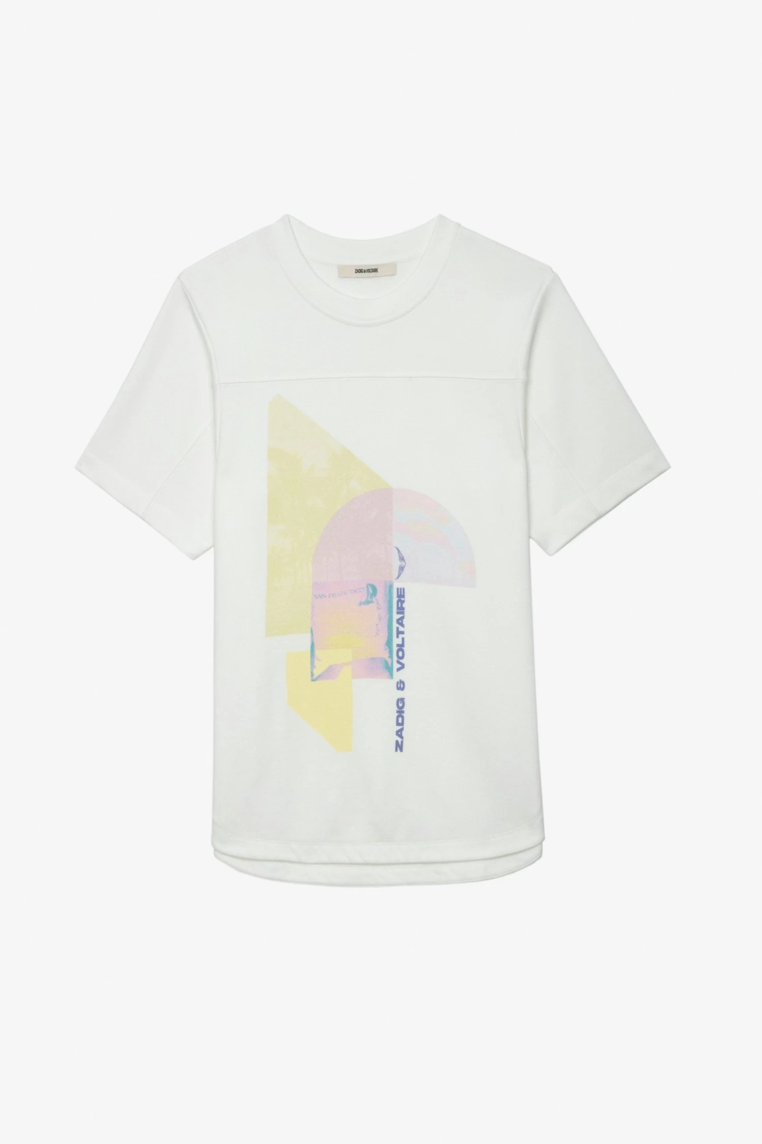 White short-sleeved T-shirt with Terry Palmier print.