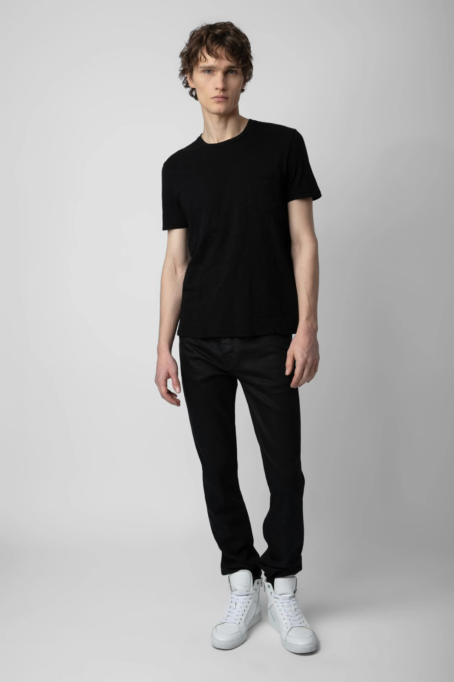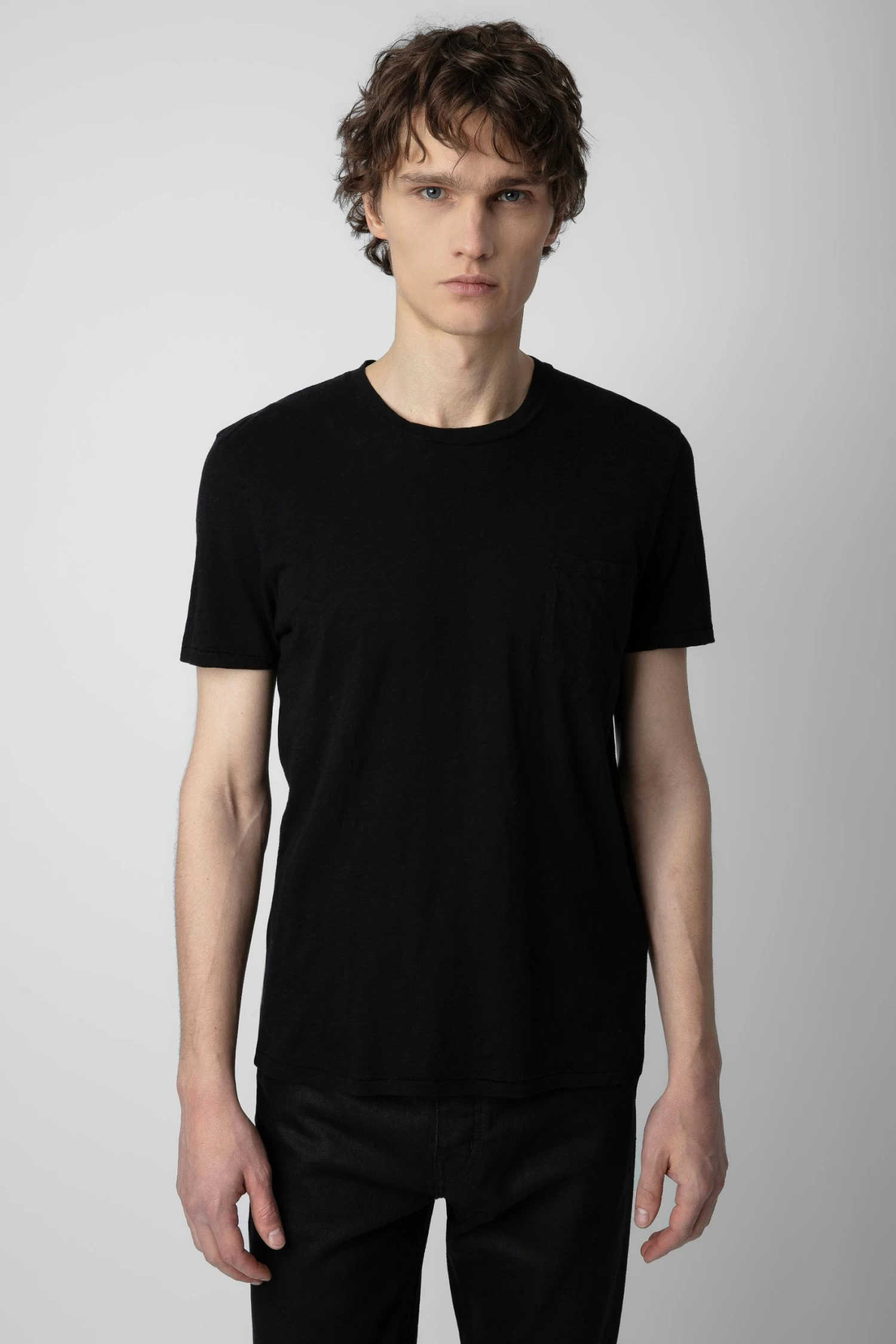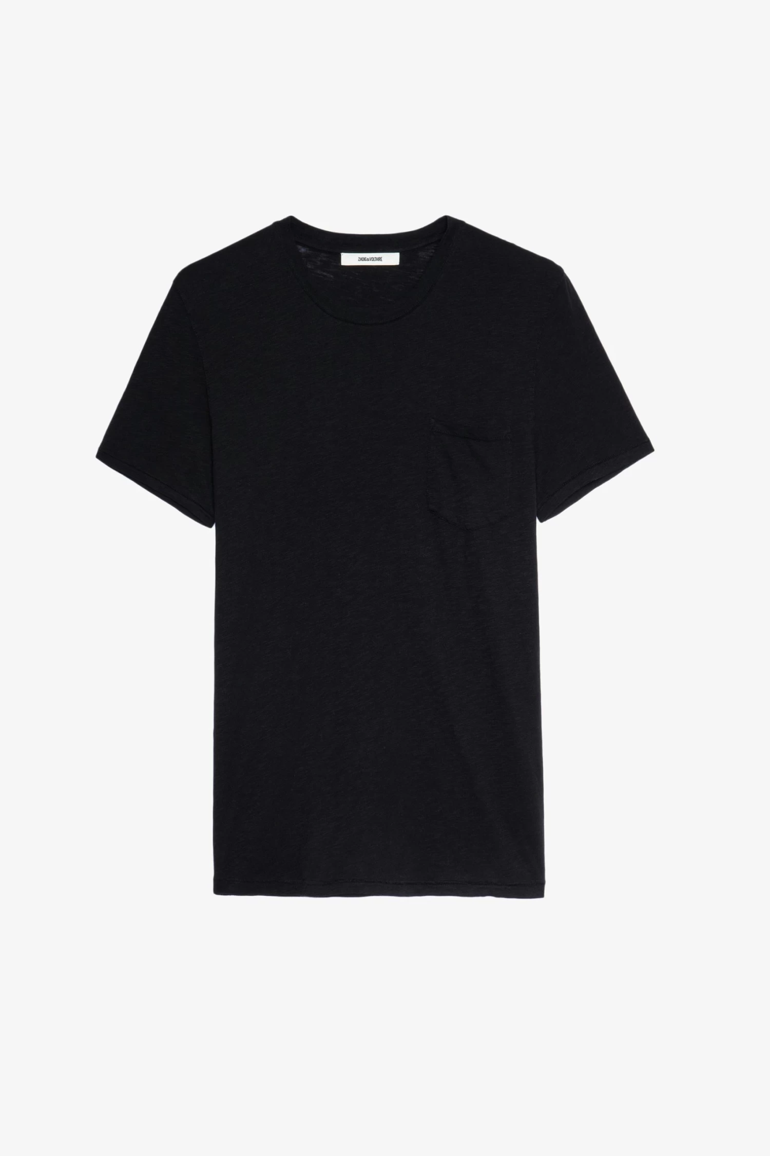Slub cotton T-shirt with short sleeves and a round neck, embellished with a maxi skull on the back. – Zadig&Voltaire Men’s black slub cotton T-shirt – Round neck – Short sleeves – Contrasting skull print on the back – Patch pocket on the chestModel is 186 cm / 6′ 1″ and is wearing a size M