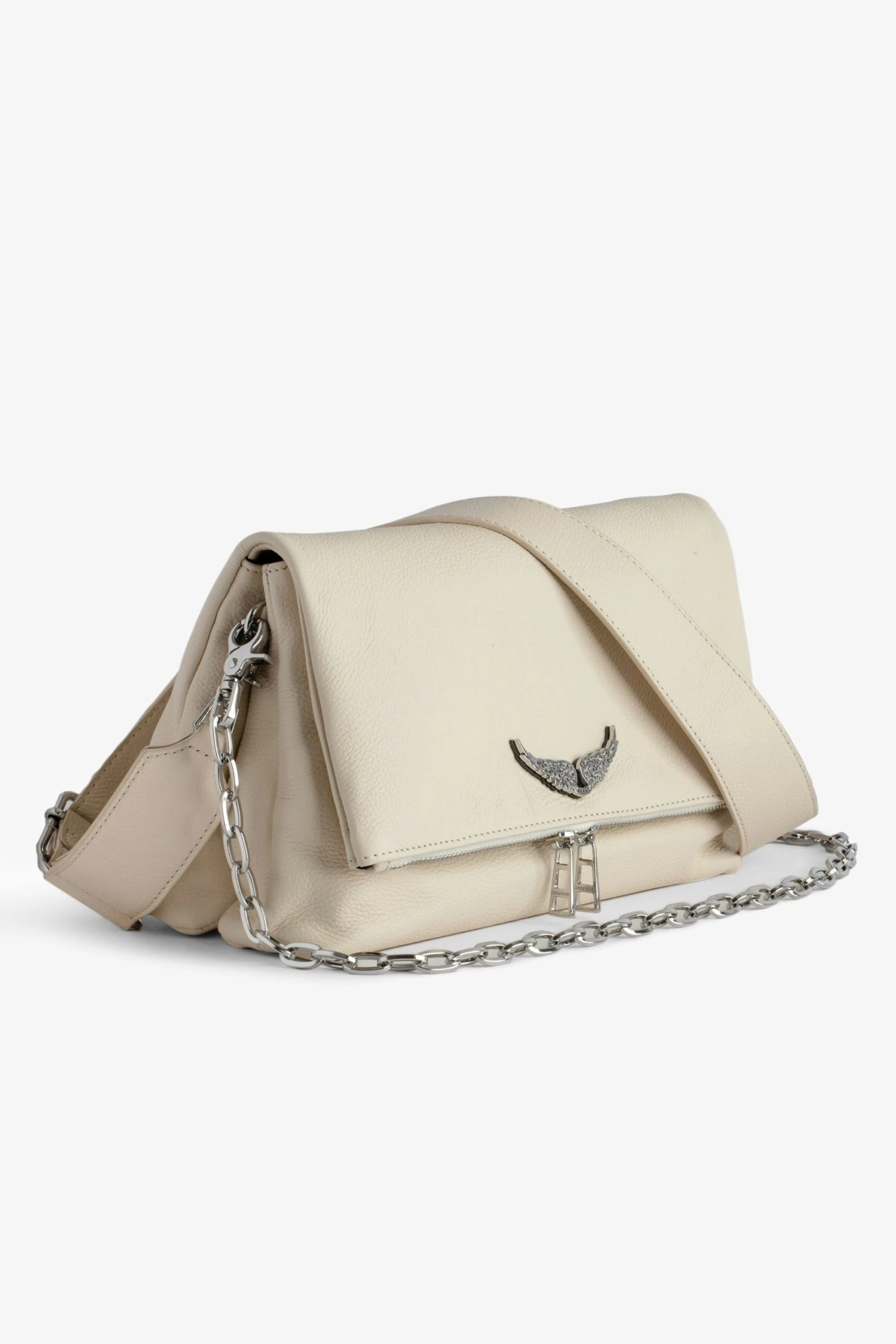 Women’s white leather Rocky bag with silver-toned metal shoulder strap