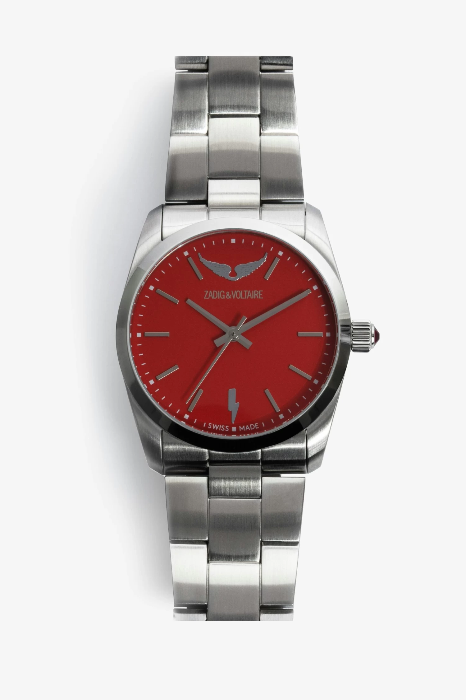 Switch to Zadig&Voltaire time with this stainless steel watch set with a rhinestone, with a matte red face in the signature style of the brand. – Zadig&Voltaire women’s stainless steel watch – Matte red Kiss face with signature patterns – Diameter 36 mm – Contrasting rhinestone – Quartz movement – Houru002Fminuteu002Fsecond functions – Steel watchband